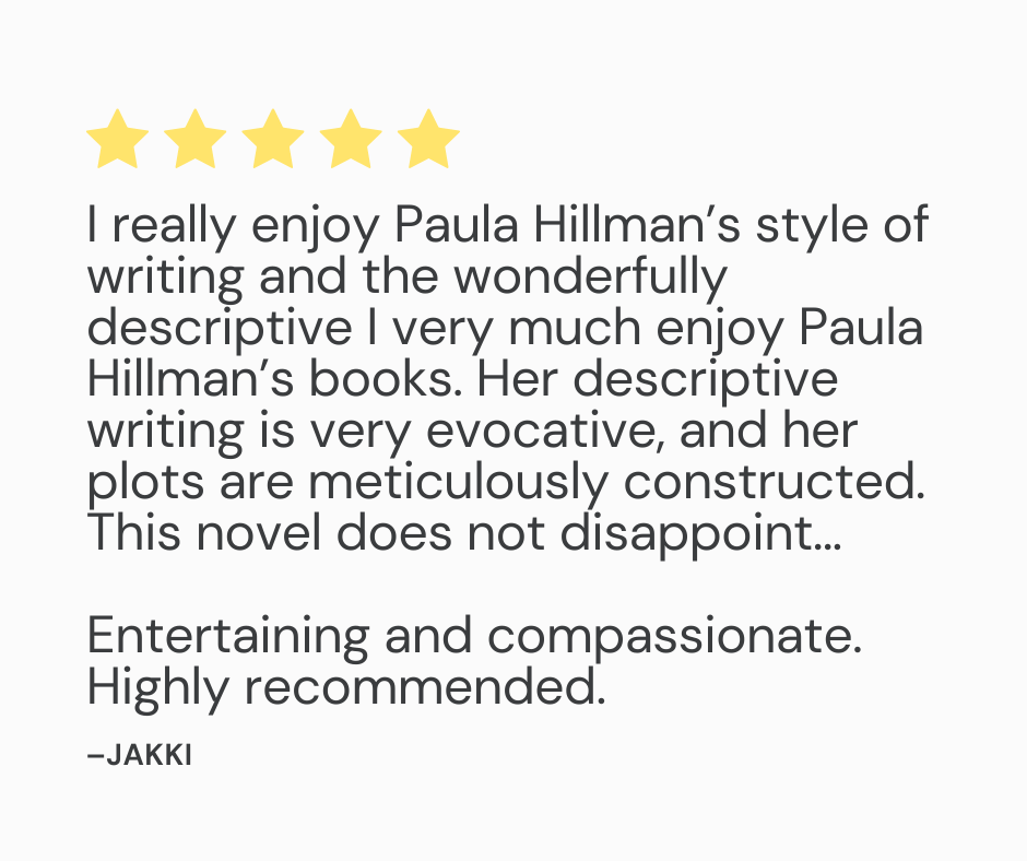 I’m Paula Hillman – a writer of mystery and romance novels with a literary flavour.