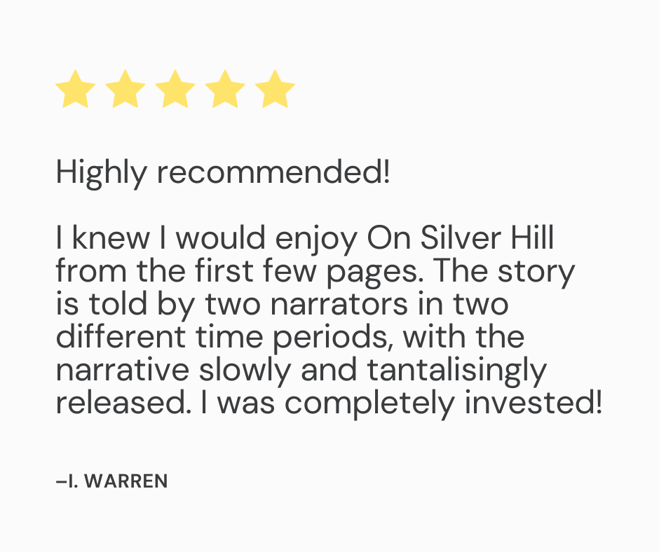 As Toni tries to unpick the truth, she makes a shocking discovery that overturns her life. She is drawn into a past she didn’t know existed, and has to navigate it with people she hardly knows. But they know her. A web of deceit forms, with Toni at its centre, and she’s not sure who to trust. Silver Hill is pulling her into its story, and she’s not sure if she wants to leave…